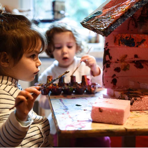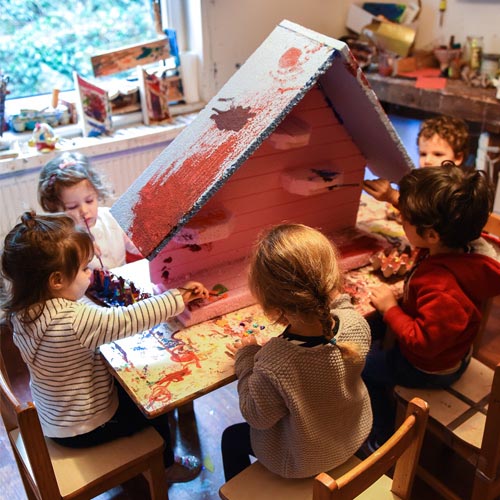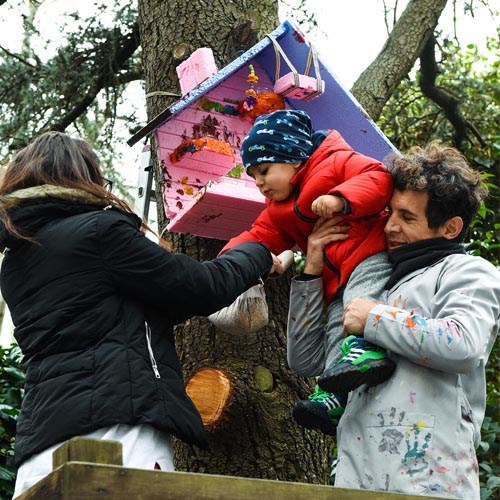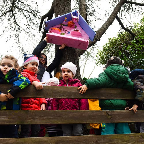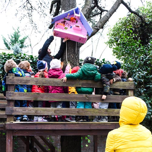 Atölyede Mehmet usta ile birlikte çocuklar bahçemizin üç ayrı noktasına kuş yuvası yaptılar. Her biri birbirinden farklı ve çocuklarca tasarlanmış yuvalar. Her birini çocuklarla birlikte yerleştirdik. Yuvaları bol bol yemlerle doldurduk.