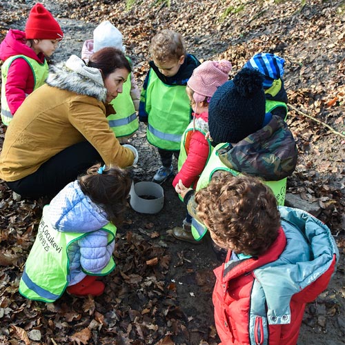 Doğa okulunda hayvan ayak izi aramak için Belgrat ormanına gittik. Hava sıcaklığı mevsim normallerinin biraz üstüydü. Ormana girişte sevgi dolu köpeklerle karşılaştık. Sanki heyecanla bizi bekliyorlardı. Kısa bir takibin ardından yanımızdan ayrıldılar. Bizde ormanda ayak izi aramaya başladık.