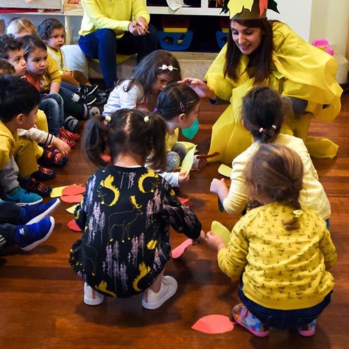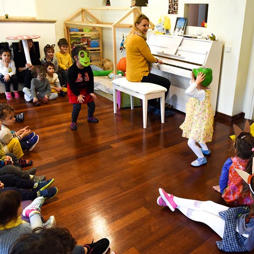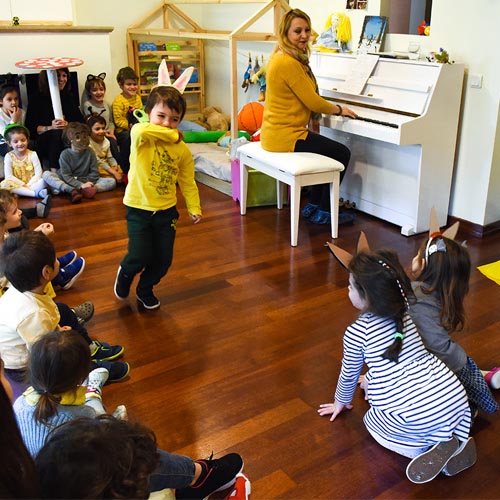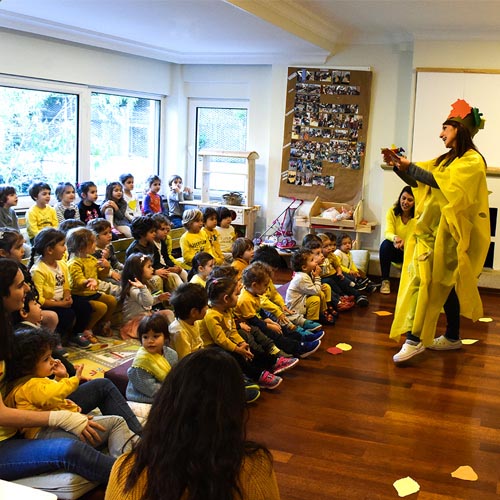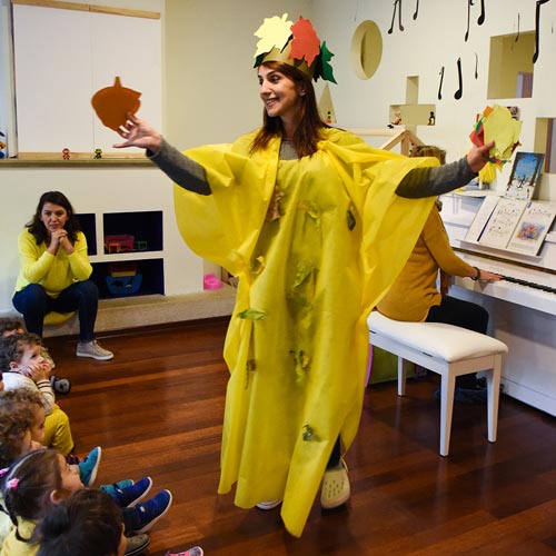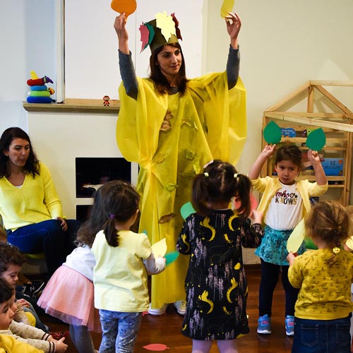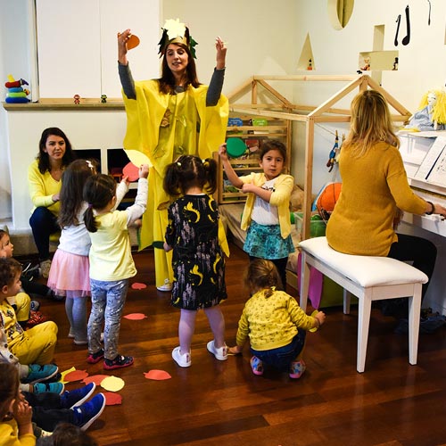 Müzik için Julia ile uyguladığımız programda Ekim ve Kasım ayı boyunca sonbahar temasını işliyoruz. Bu süre zarfında müzik saatlerimizde her hafta camdan dışarı bakıyor ve havayı konuşuyoruz. Sonbahar mevsiminde hangi hava koşulları ile karşılaştığımızı ona göre neler giydiğimizi hatta neler yediğimizi bile konuşuyoruz. İlgili şarkıları öğreniyor, dans ediyor hayal kuruyor ve müzikler eşliğinde hayallerimizi canlandırıyoruz.