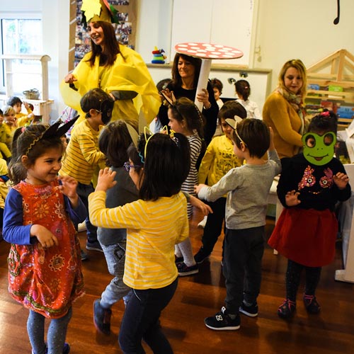 Yine bu yılda partimizi yaptık. Parti günü hepimiz için özeldir. O gün hepimiz sonbaharı hatırlatan renk olan sarı giyiniriz. Julia okulumuza gelir ve küçük sınıfta toplanırız. Başlarız öğrendiğimiz şarkıları söylemeye. O sırada sınıfın kapısı açılır ve bir anda karşımızda Sonbahar vardır :) Sonbahar bizim öğretmenimiz idi. Kendi diktiği kostümü ile girdi sınıfa. Çocuklarla birlikte danslar etti ve yapraklarını döktü Sonra Sonbahar da aramızda yerini aldı. En son olarak büyük grubumuz vardı artık sahnede. Hepsi birer hayvan oldular, ormanda yürürken başlayan yağmurdan sığınmak için yer ararken karşılarına çıkan kocaman bir mantar onlara şemsiye oldu, şemsiye kim miydi? Tabi ki büyük grubumuzun öğretmeni :)