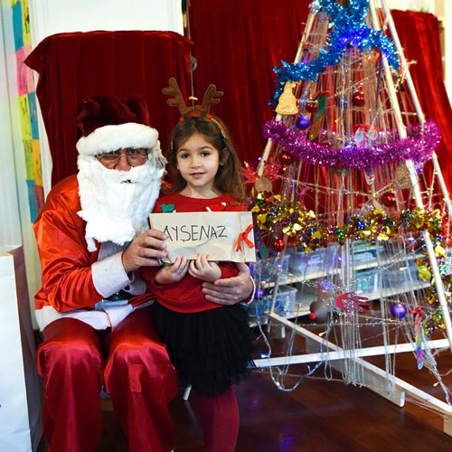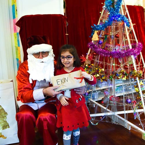 Şarkılar sonrası Noel Baba’yı ağacımızın yanına koltuğa oturttuk ve oyunlar oynayalım biraz da dedik. Oyunları seyreden Noel Baba dayanamayıp bizim oyunlarımıza da katılmaz mı iyice mutlu olduk. Noel Baba hepimize bu güzel eğlence için teşekkür etti ve artık 'hediyelerin vaktidir' dedi. İşte o an yine bir sessizlik, acaba torbada neler vardı? Torbasından tek tek paketleri çıkardı ve her birini yanına çağırarak hediyesini verdi ve birlikte fotoğraf çektirdiler.