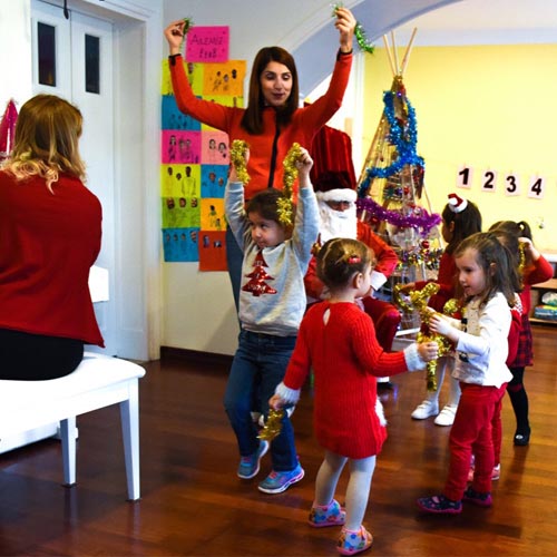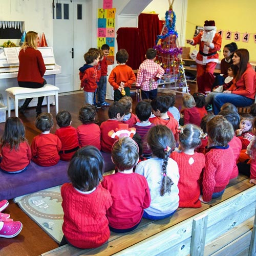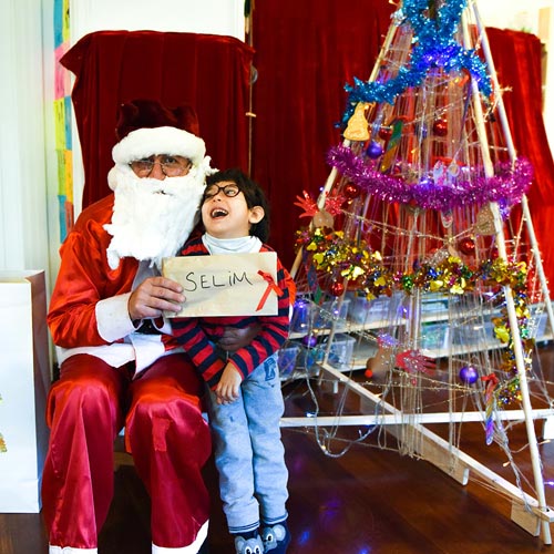 Parti önce Julia’nın şarkıları ile başladı ve şarkılar arasında hep Noel Baba geldi mi diye sessizleştik ve kapıyı dinledik. Ne zaman ki Noel Baba’nın ayak sesleri duyuldu ve kapı çalınarak içeri girdi işte o an nefesler tutuldu sınıfta. Hepimiz kapıda beliren Noel Baba’ya kitlenmiştik, gülüyordu. Heyecan, sevinç, şaşkınlık, korku, endişe her türlü duygu vardı gözlerde. Ama o gözlerdeki duygu ne olursa olsun hepsi merakla ne yapacağını izliyordu. Noel Baba önce hepimize ‘Merhaba Çocuklar’ dedi ve babacan kahkahasını attı. Sonra sırtında getirdiği kocaman hediye torbasını yılbaşı ağacının yanına yerleştirdi, o an tüm gözler hediye torbasındaydı. Ve Noel Baba önce başladı Julia ile sohbet etmeye. Neler yaptığımızı sordu, Julia’da ona öğrendiğimiz yılbaşı şarkılarını söylediğimizden bahsedince ‘Hadi öyleyse birlikte söyleyelim’ dedi ve bizler kaldığımız yerden başladık şarkılarımıza. Noel Baba’nın bize eşlik ettiğini ve biz gibi danslar ettiğini gören gözlerdeki duygular farklılaştı, rahatladı.